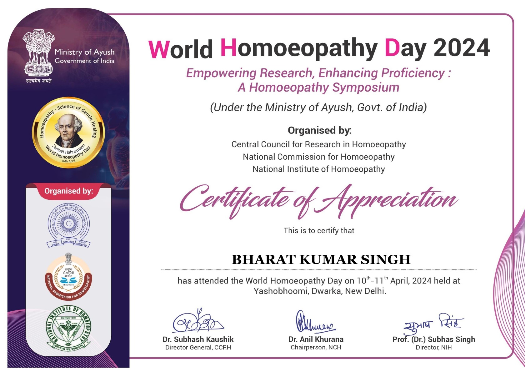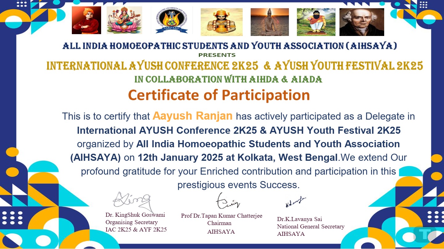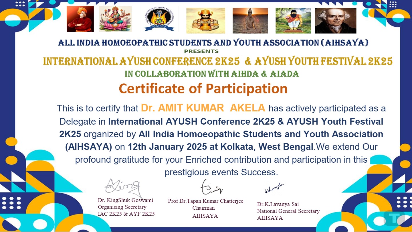 Recognised by- (C.C.H.) National Commission for Homeopathy, Ministry of AYUSH, Govt. of India & Govt. of Bihar.